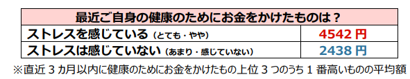 6.ストレスを感じている人が健康対策に使うお金は、感じていない人の2倍
