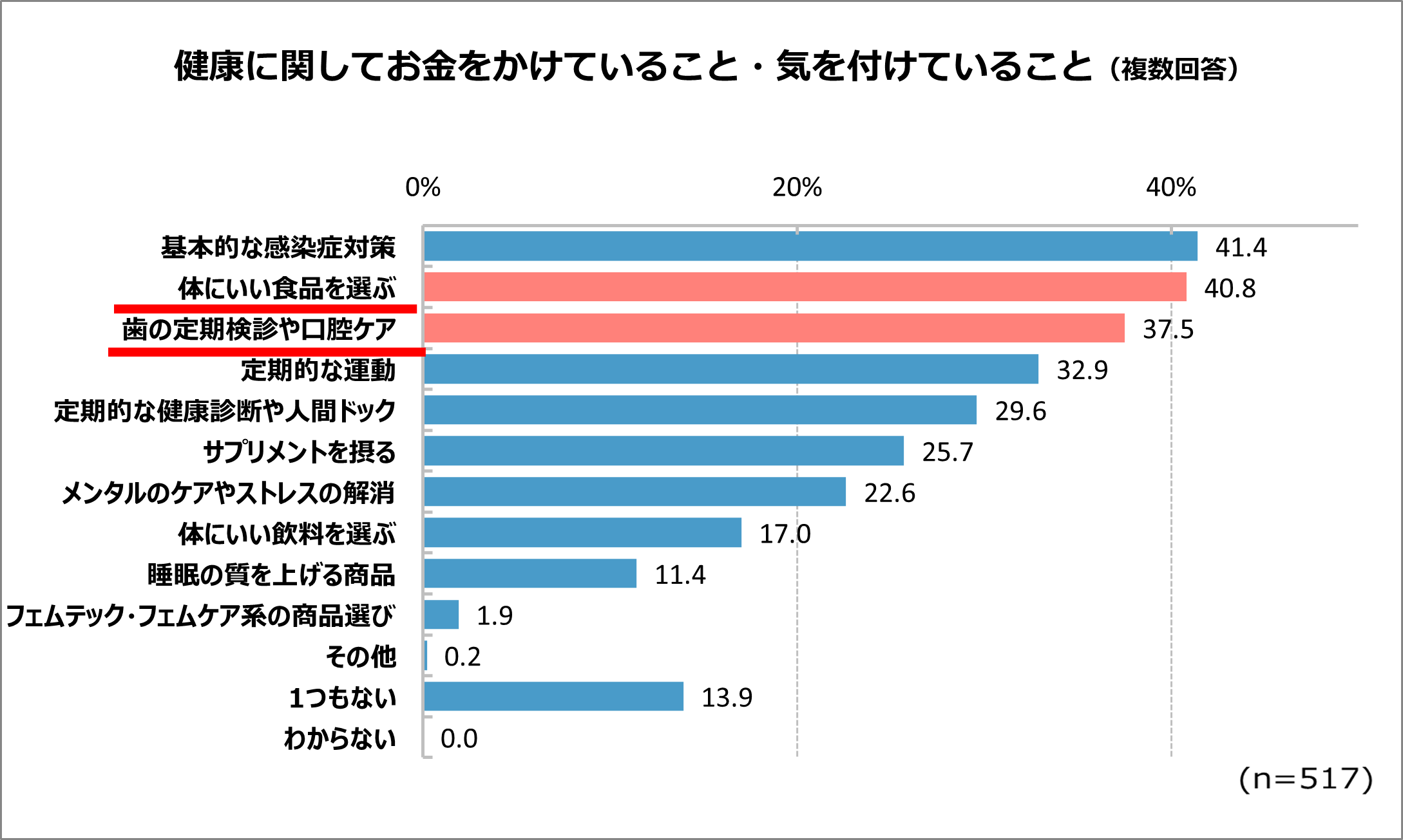 3.健康に関してお金をかけていることは?―「体にいい食品」「歯や口のケア」