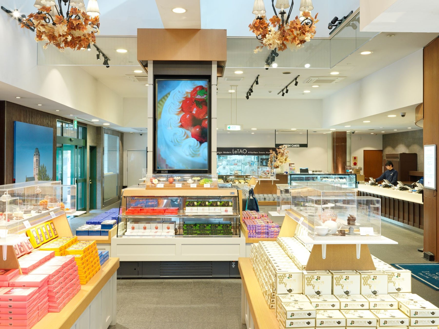 小樽観光の中心、メルヘン交差点にかまえる大きな塔のような姿をした店舗には、街のシンボルとして、人々に愛され、親しまれたいという願いが込められています。1階には、さまざまな洋菓子が販売されているほか、テイクアウトコーナーを併設。さらに、2階には喫茶コーナーも設けられており、つくりたての北海道限定・生ドゥーブルフロマージュをはじめ、スイーツプレートや本店限定の紅茶なども楽しめます。最上階には展望室もあり、ノスタルジックな街並みのほか、天気の良い日には美しい小樽の海や山も一望できます。