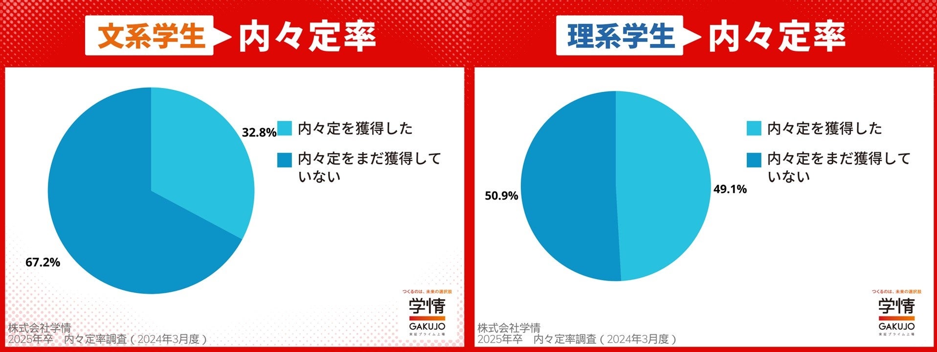 (2)理系の内々定率は「49.1%」と5割に迫る結果となり、文系を大きくリード