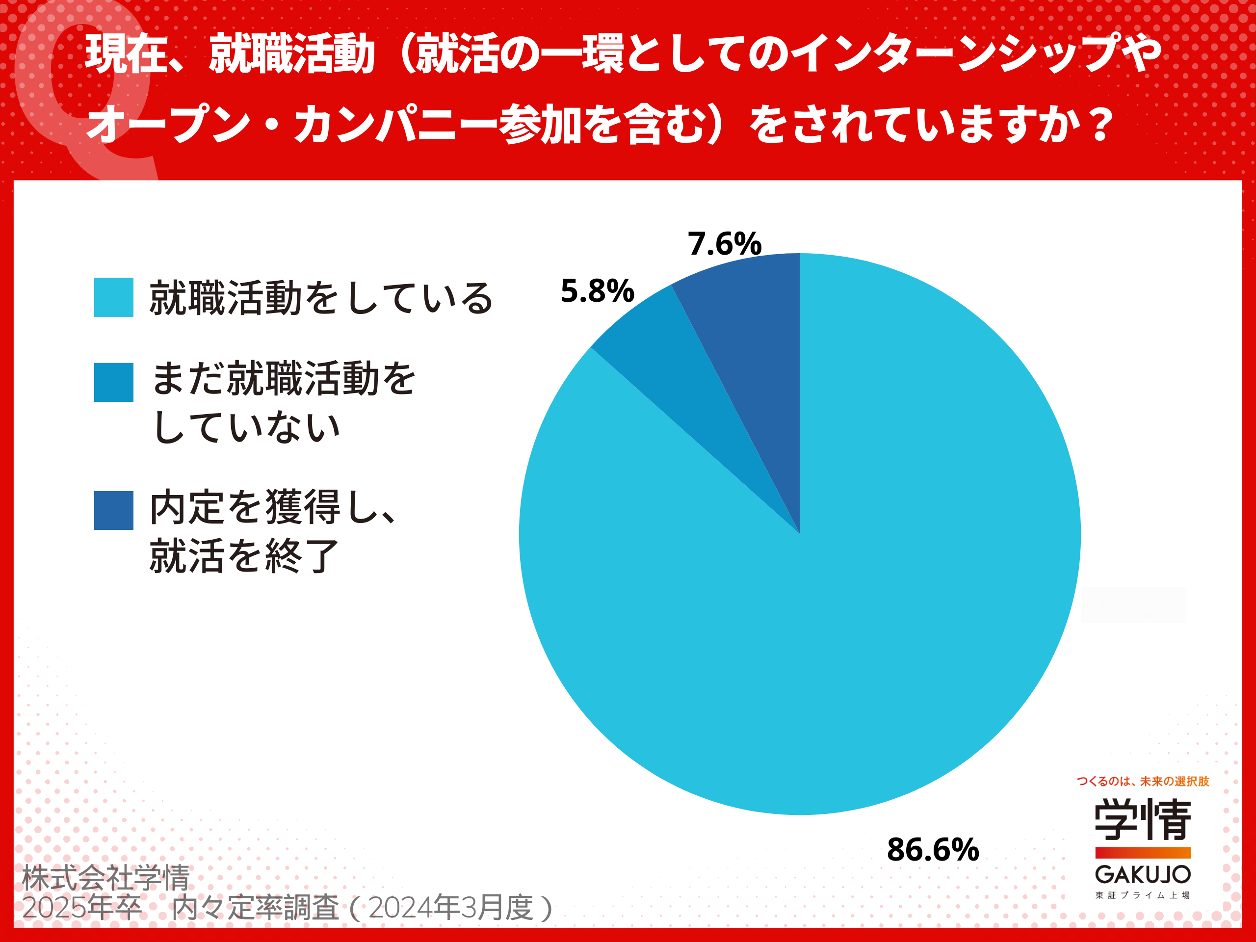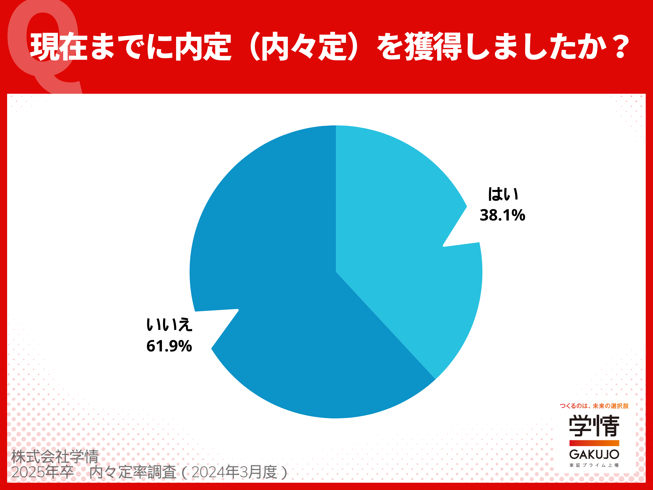 2025年卒学生の3月度の内々定率(2月末段階)は「38.1%」。1月末時点から1ヵ月で8.9ポイント増となりました。