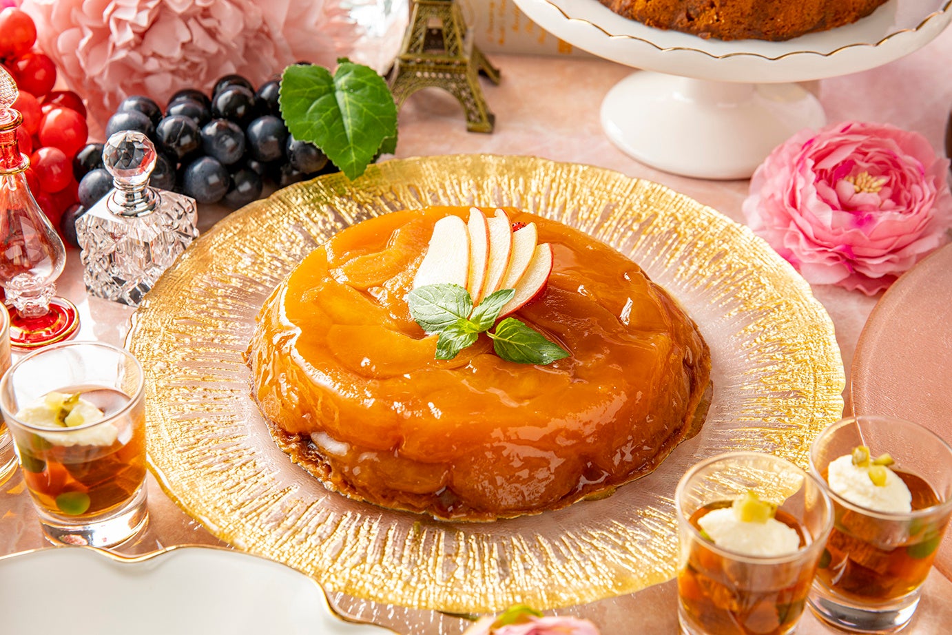じっくりと甘く煮詰めたりんごは砂糖とバターのキャラメリゼソースがしみ込み、ほろ苦さとともに楽しむフランス伝統菓子。たっぷりのりんごの香ばしい香りをお楽しみください。