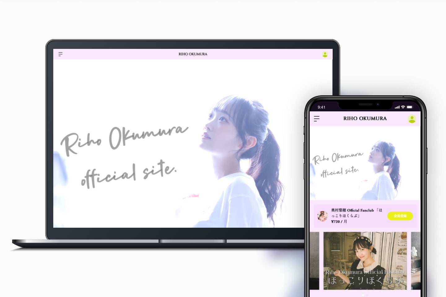 この度オープンしたのは、奥村梨穂のオフィシャルサイトおよびファンクラブです。当ファンクラブではライブ配信やバースデーメッセージ、ここでしか見ることができないブログやギャラリーなど、会員の皆様にお楽しみいただけるコンテンツを多数ご用意しています。