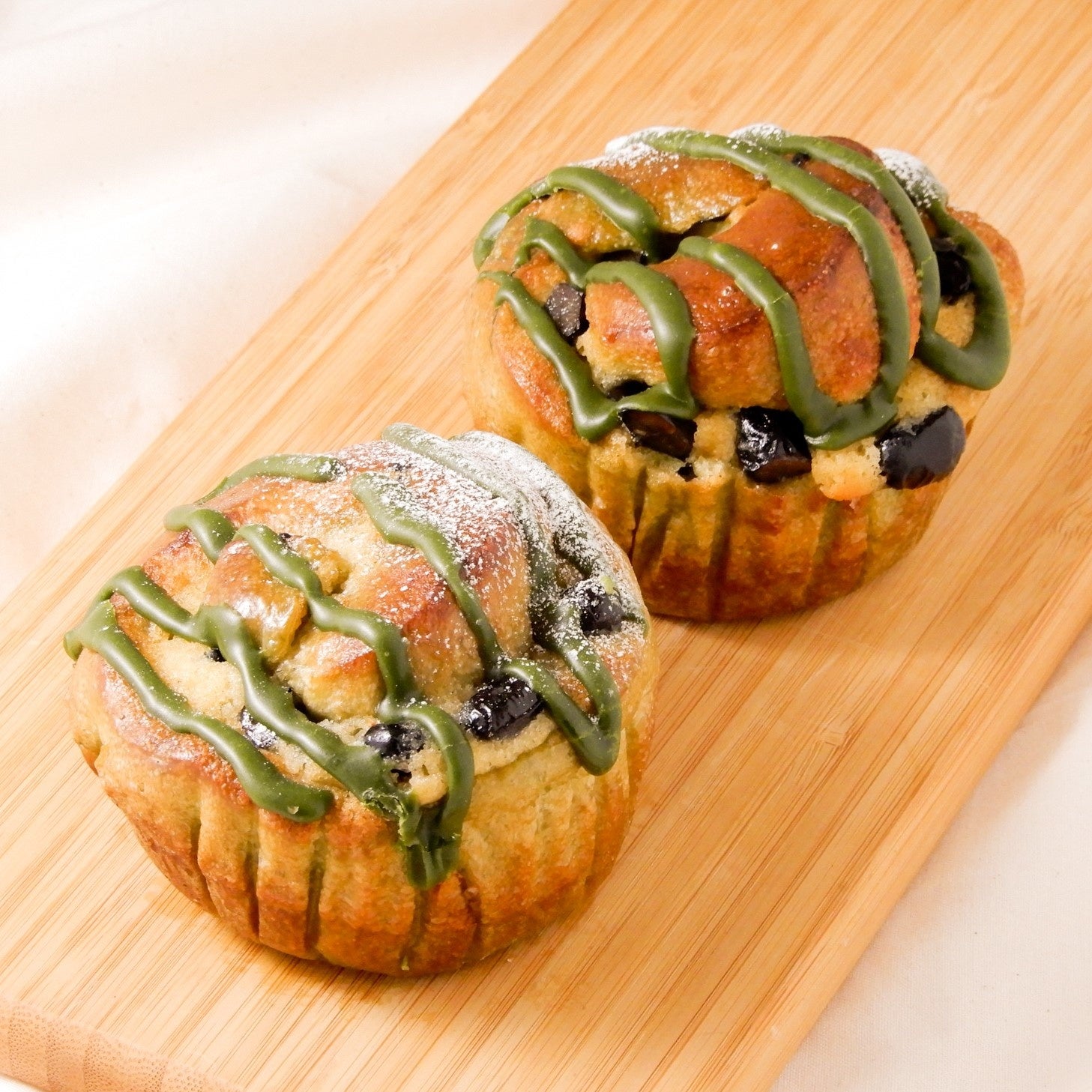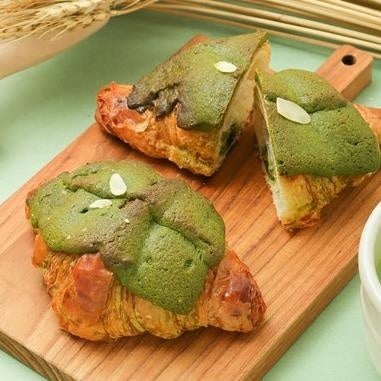 抹茶風味のパンに丹波黒豆を巻き込み焼きあげました。
