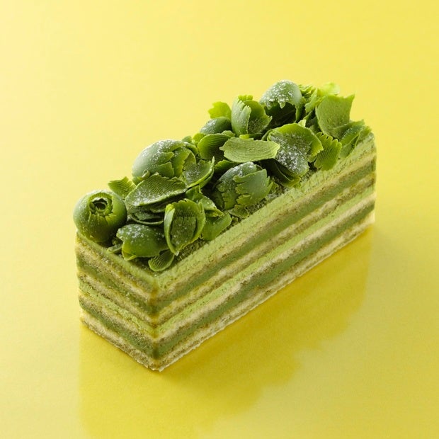 宇治抹茶の豊かな風味を生かしたムースに、スポンジ、ガナッシュを繊細に重ねました。