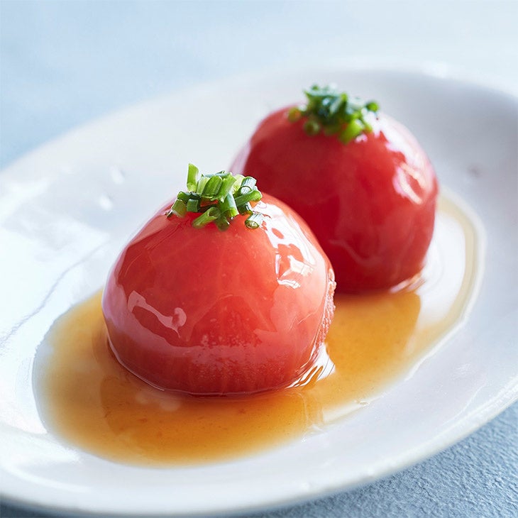 高知県産のシュガートマトの甘みを生かした、まるごとトマトのおひたし。うまみの詰まったつゆが味の決め手です。