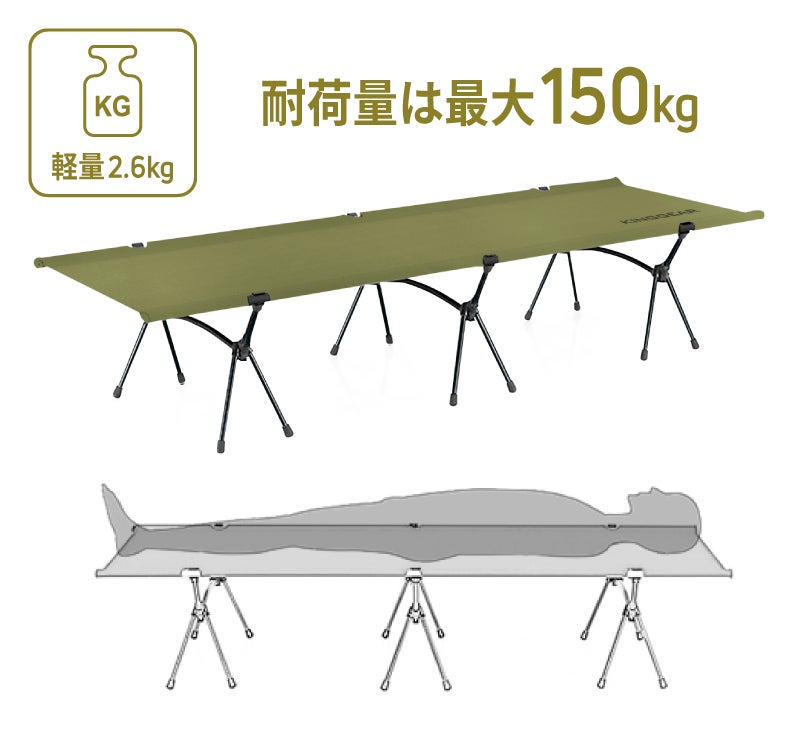 2.6kgの超軽量ながら耐荷量は最大150kg