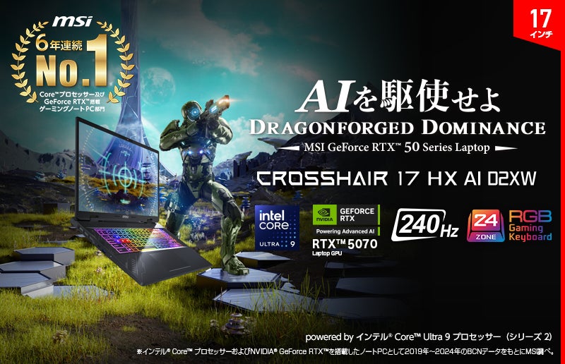 フルHD以上の高解像度で高画質・高フレームレートを実現する高性能GPU搭載!「Crosshair 17/16 HX AI D2XW」「Katana 17/15 HX B14W」発売