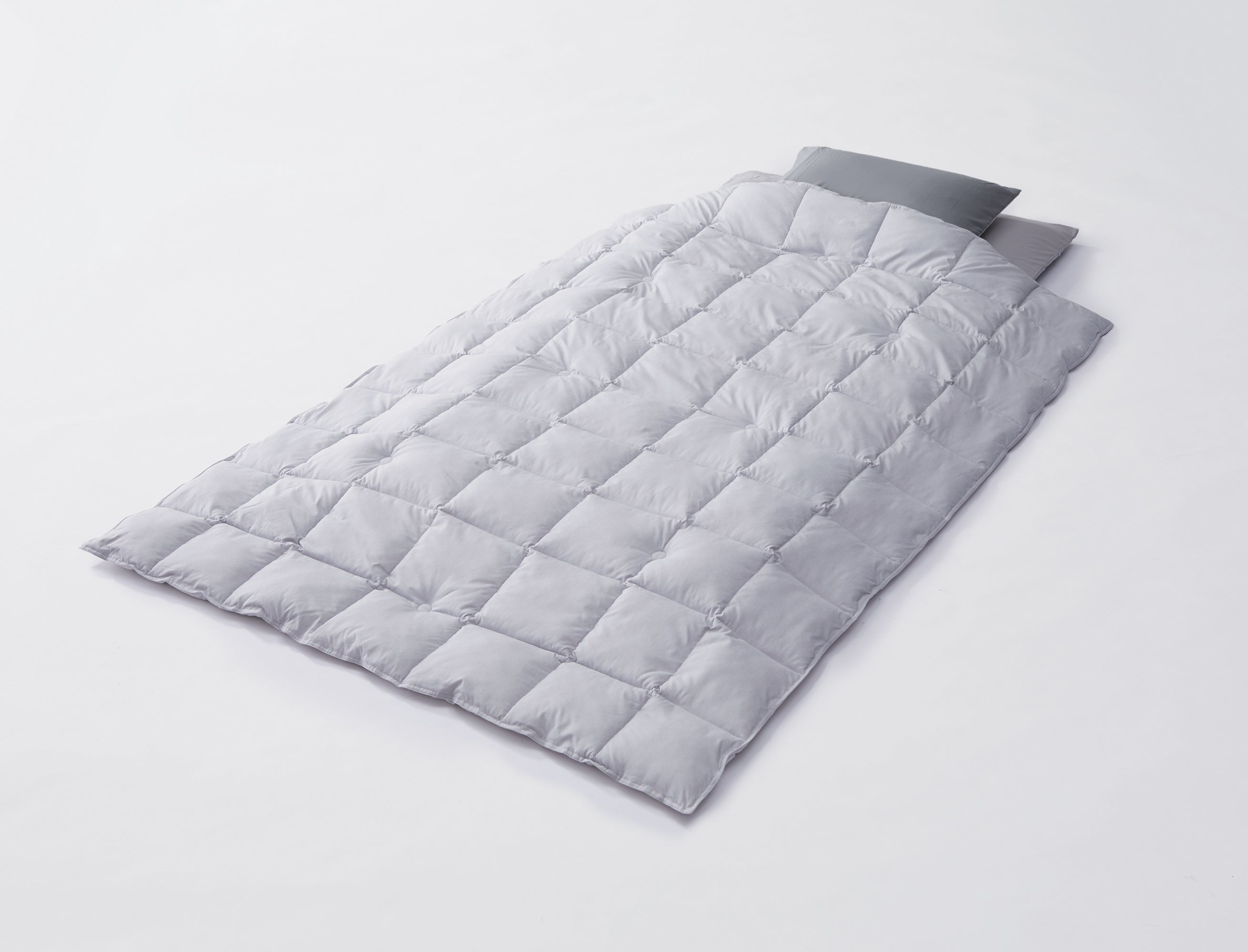 吸湿発熱機能を持つ保温層(A面)と超吸放湿に優れた快適面(B面)、異なる2層のふとんを特殊な縫製技術で1枚に仕立てた掛けふとん。室内温度15℃(A面を身体面)から25℃(B面を身体面)まで寝床内部を快適な体感温度(温度×湿度)で維持でき、このふとんがあることで、年間を通じて快適な就寝環境を実現する。
