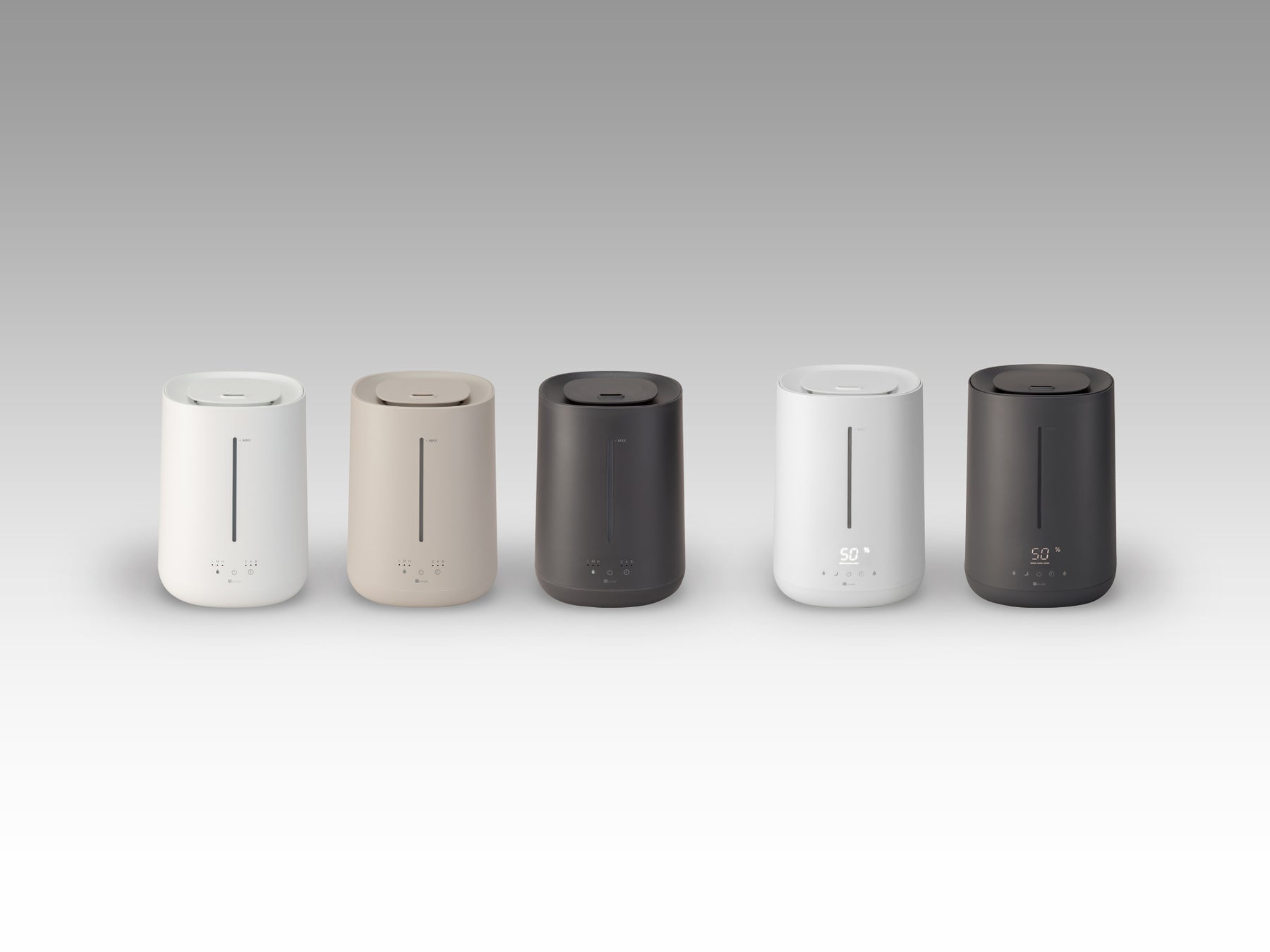 よりシンプルでお手入れもしやすい加湿器シリーズ。蓋の上から注ぐ継ぎ足し給水とタンクへ直接注ぐ給水が選べ、噴霧方向は360度任意に設定できる。容易に持ち運べるタンクでお手入れも簡単。ライト付きの残量ゲージはナイトライトとしてもお使い頂ける。湿度設定モデルは8畳向けで、40~60%の湿度設定ができ省エネにも配慮。
