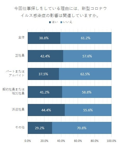 全体で38.8%が「はい」と回答し、新型コロナウイルス感染症の影響を受けて仕事探しをしていた割合は4割を下回った。