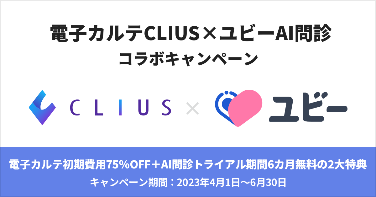 電子カルテ「CLIUS」×「ユビーAI問診」コラボキャンペーン実施!クリニックの業務効率化とDX推進、ICT化を支援!