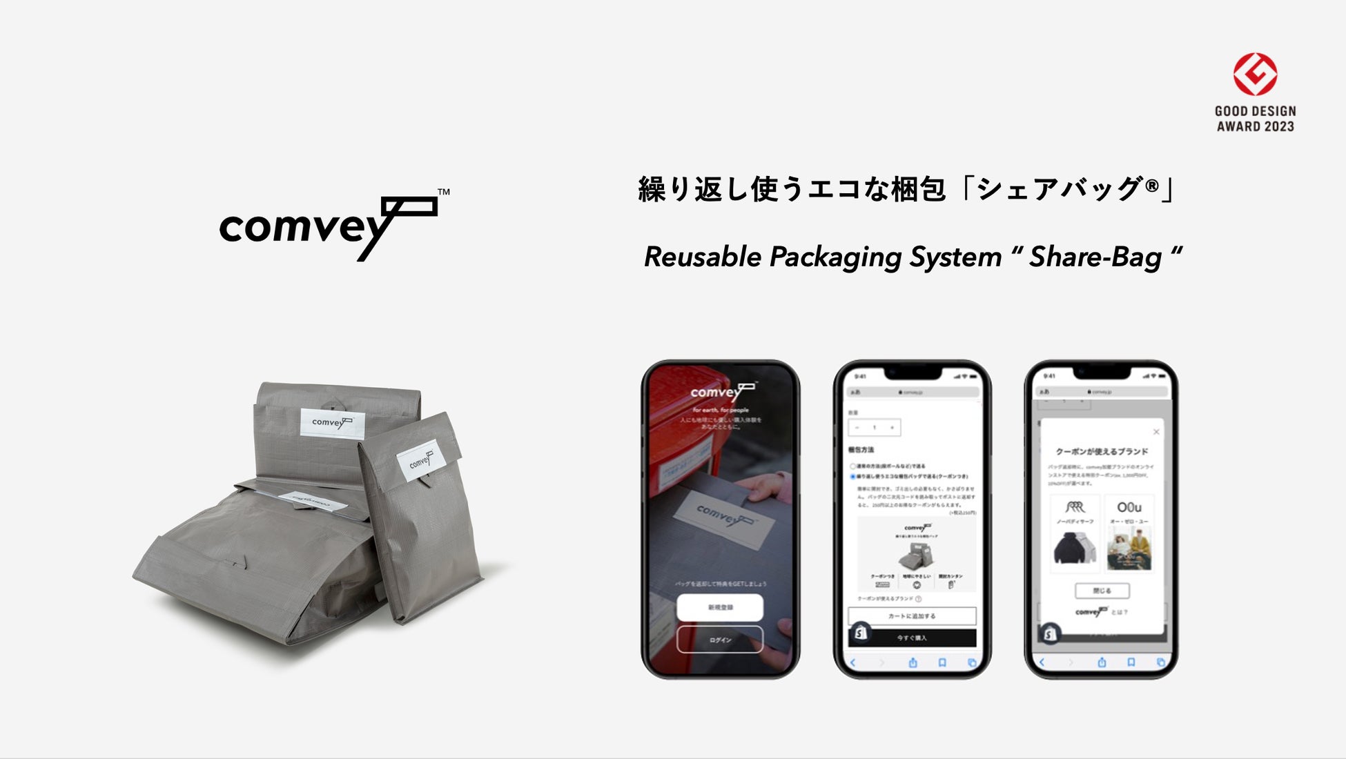 ECが普及するにつれ世の中が便利になる一方で、⼤量の段ボールゴミを捨てることに手間や無駄を感じている方が多い中、comveyが展開するシェアバッグは、CO2削減や梱包資材廃棄の課題解決事業として独自性が高く、ご利用になるお客様と共創しながら脱炭素に取り組むことができる持続可能なビジネスモデルです。