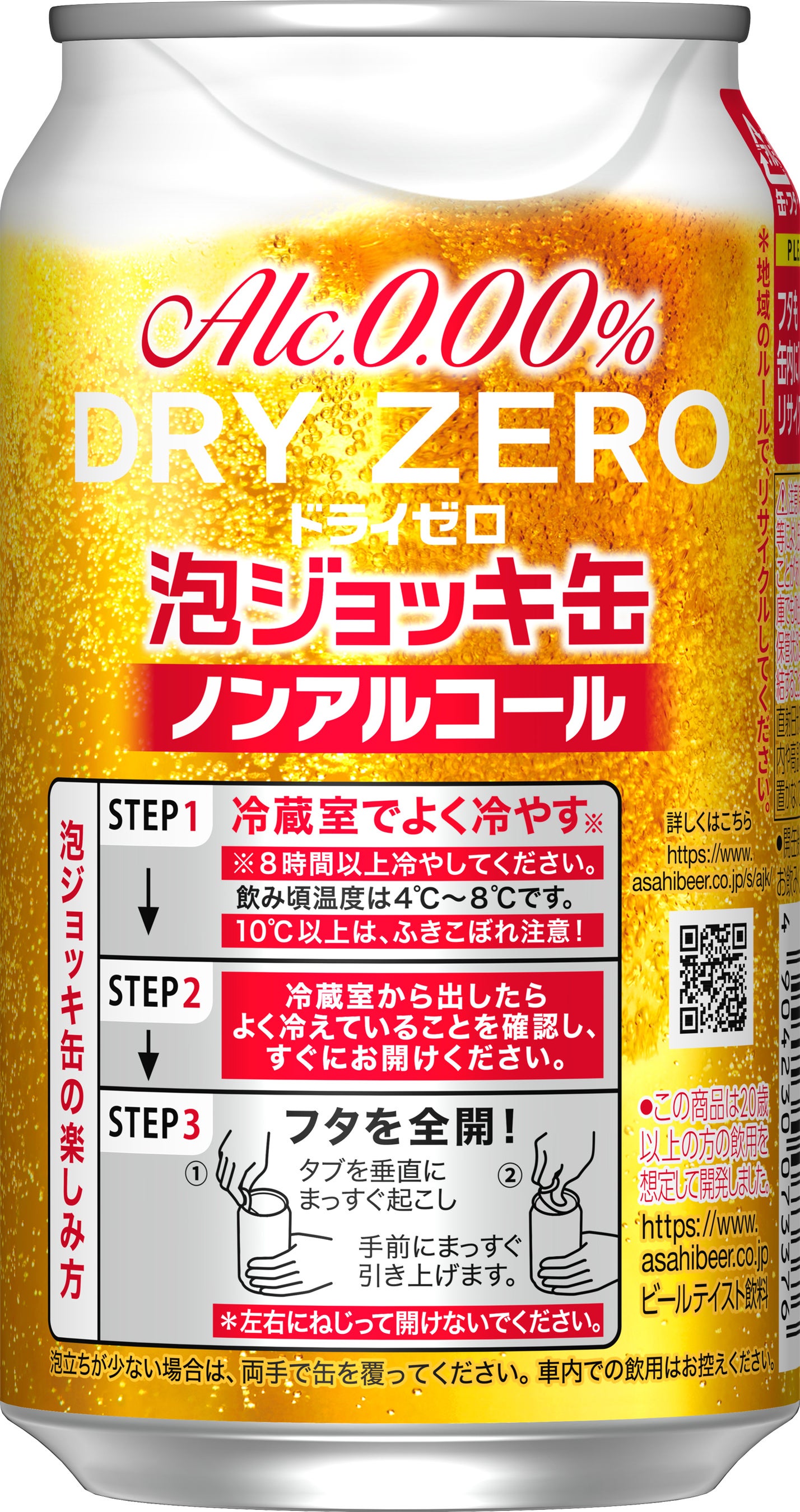 4月23日からは、全開するふたを開栓すると泡が自然発生する「泡ジョッキ缶」を使用した『アサヒドライゼロ 泡ジョッキ缶』を数量限定で発売します。ノンアルコールでありながら、ふたを開けた瞬間に湧き出すきめ細かい泡と「ドライゼロ」ならではのキレのあるビールらしい飲みごたえが楽しめます。2023年12月の発売時には、お客さまから「泡を楽しめる」「フルオープンでゴクゴク飲める」と好評でした。