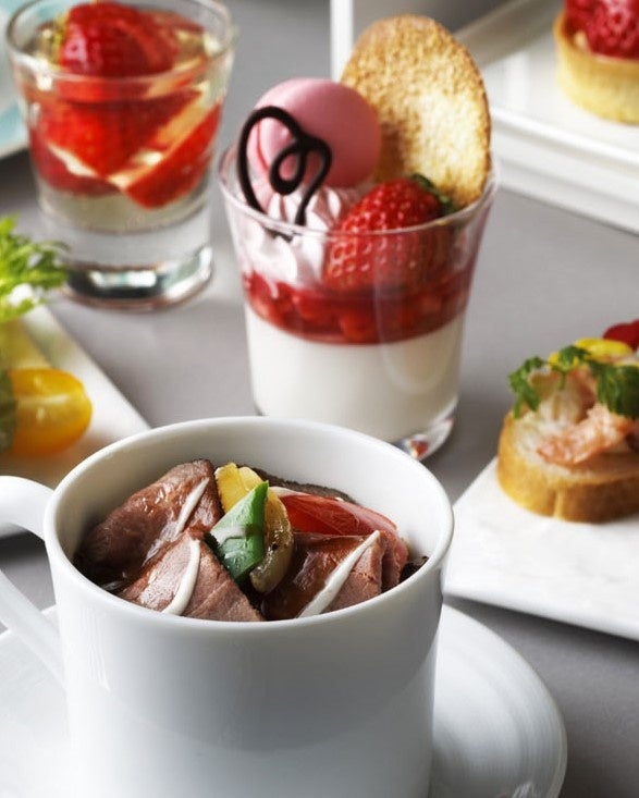 ロビーラウンジにて大好評のトワイライトハイティーはシーズナルにメニューを変え、どの季節にお越しいただいても、親しみのなかにワクワクする新しさと発見がある、心躍るアイテムを取り揃えています。