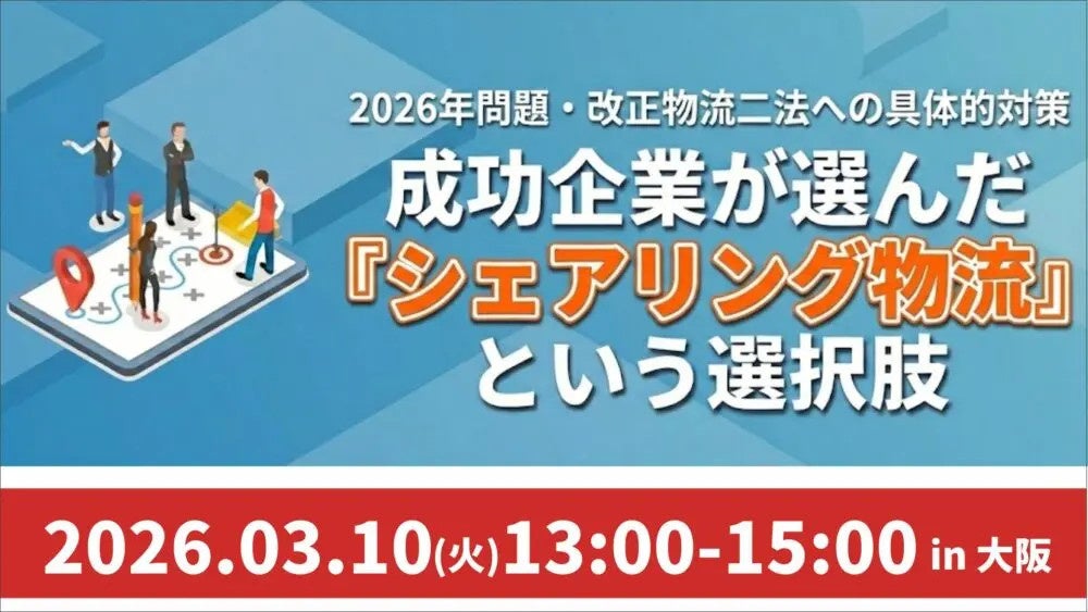 2026年3月10日(火)、株式会社船井総研サプライチェーンコンサルティング(本社:東京都中央区、代表:橋本直行、以下「船井総研SC」)が、シェアリング物流に関するセミナーを開催します。