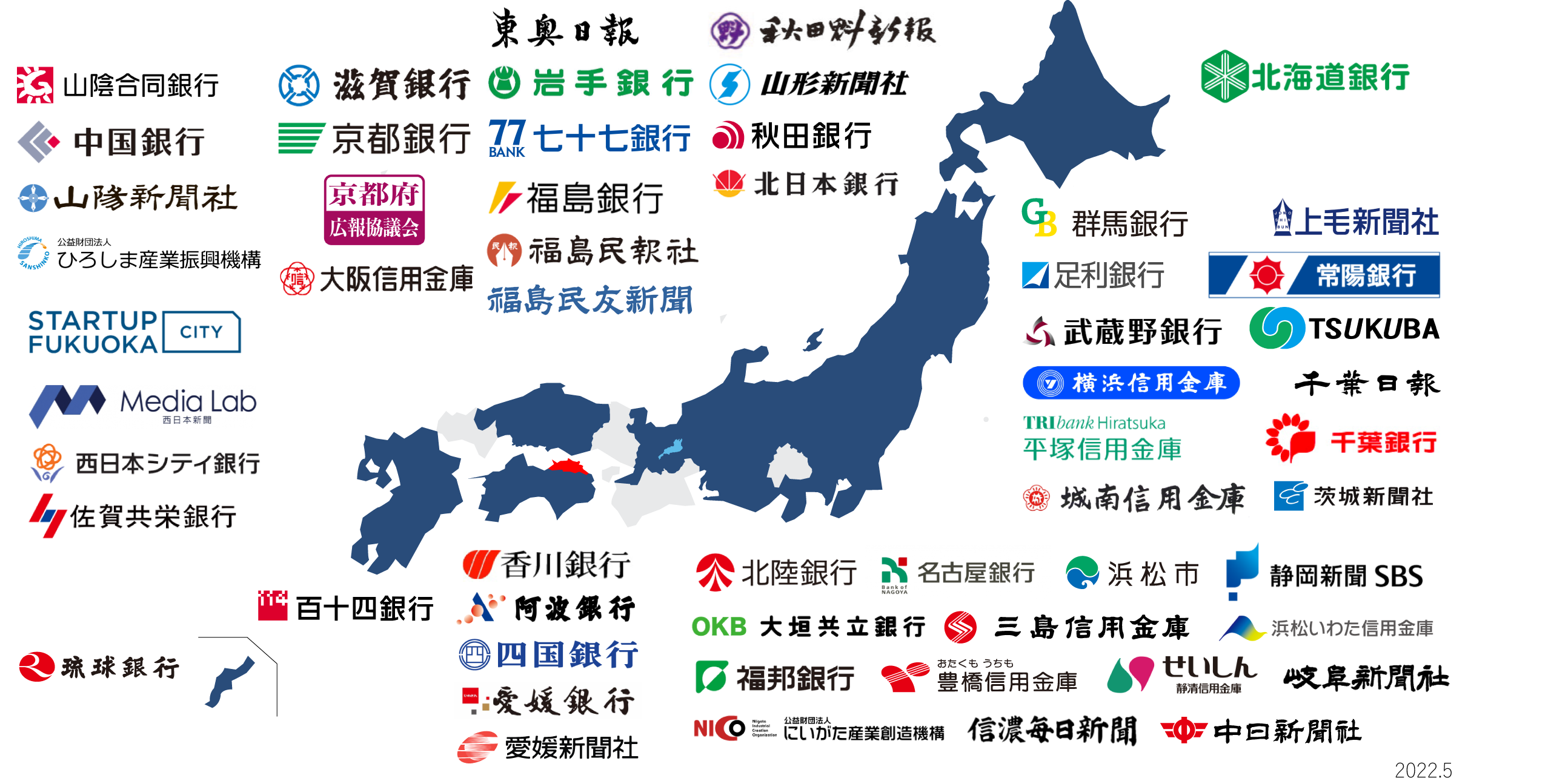 地方情報流通のための提携は地方金融機関35例(27行・8信金)、地方メディア16社、地方自治体等1府2県3市、合計57例(41都道府県)となりました。