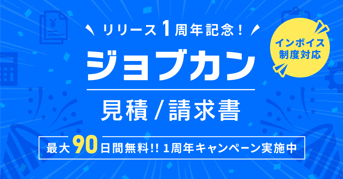「ジョブカン見積/請求書」リリース1周年!中小企業のクラウド化を支援する「最大90日間無料キャンペーン」と「インボイス対応サポートプログラム」を開始