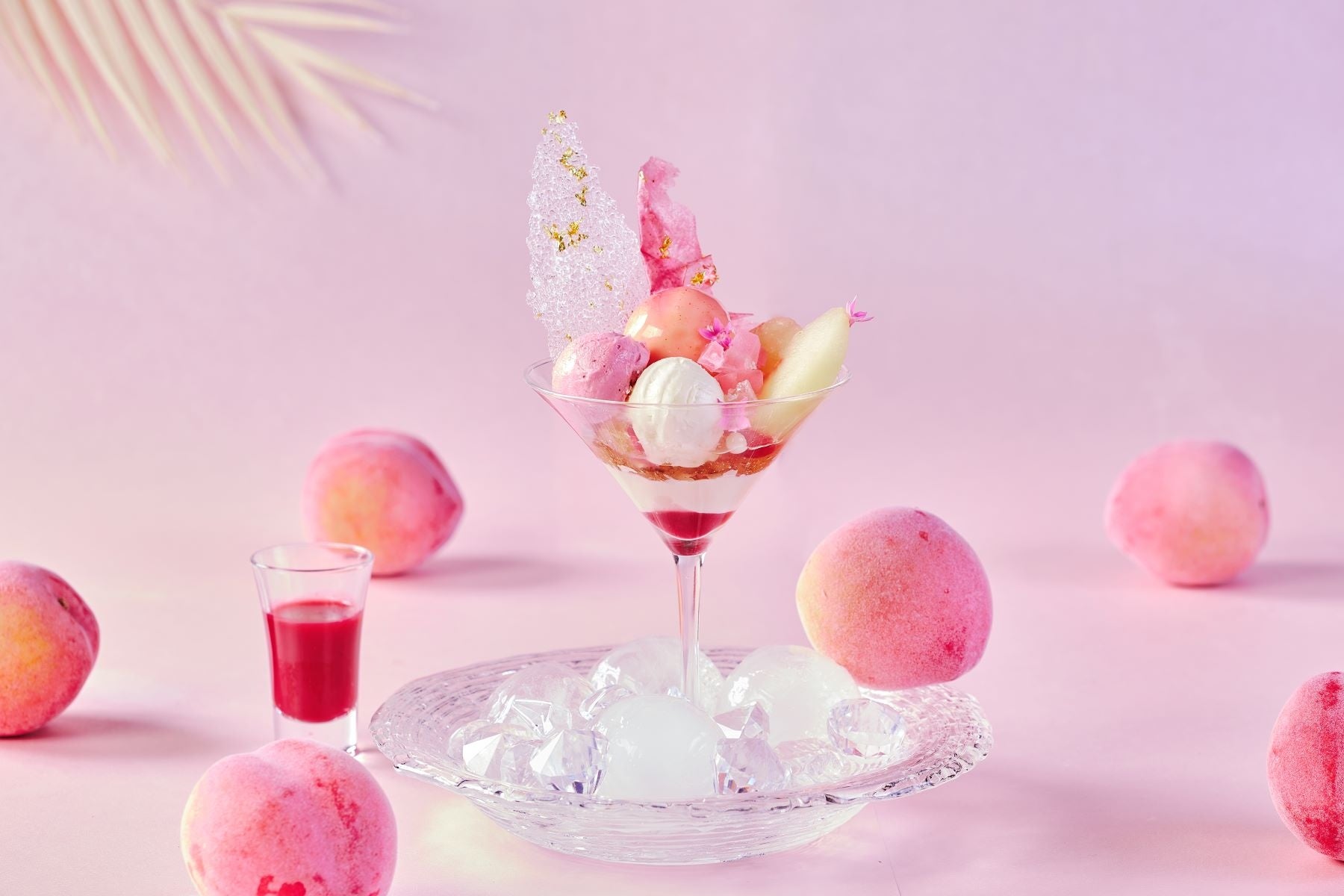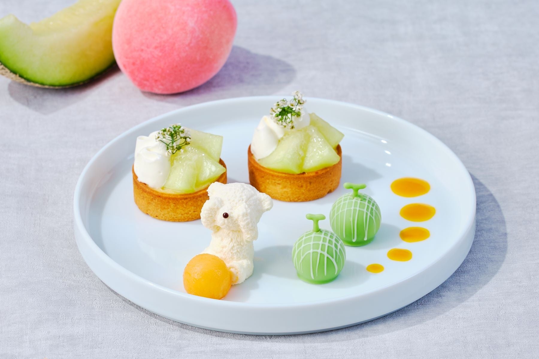 果実溢れる桃の形が可愛らしいムースをはじめ、つるっとした食感のジュレ、桃の果実とパンナコッタがバランスよく混ざり、桃のシャーベットがじゅわっととろけてすべてを包み込む桃のヴェリーヌや、ジューシーな果実感溢れるメロンタルト、まるで本物のマスクメロンのような芳醇な香りを閉じ込めたボンボンショコラなど、夏のフルーツを代表とする「桃」と「メロン」の魅力がふんだんに詰まったスイーツを堪能できます。