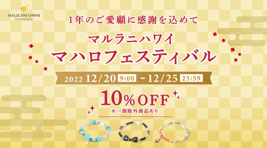 【6日間限定!10%オフ】ハワイ発パワーストーンジュエリーマルラニハワイ マハロフェスティバル開催決定