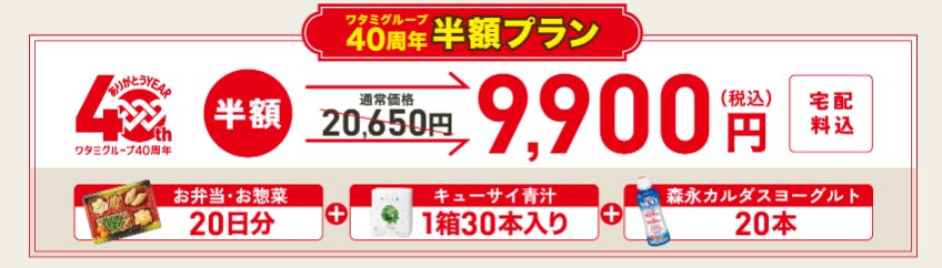 ワタミグループ40周年を記念して、「40周年半額プラン」を5月16日より、「ワタミの宅食」テレビショッピングで販売開始!