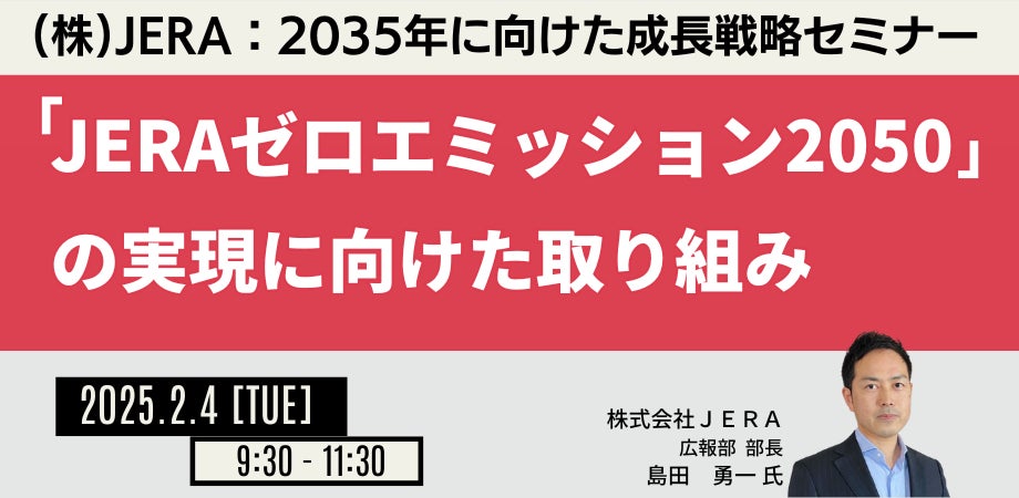 JPI(日本計画研究所)は、株式会社JERA 広報部 部長 島田 勇一 氏を招聘し、2035年に向けた成長戦略 及び 「JERAゼロエミッション2050」の実現に向けた取り組みについて詳説いただくセミナーを開催します。
