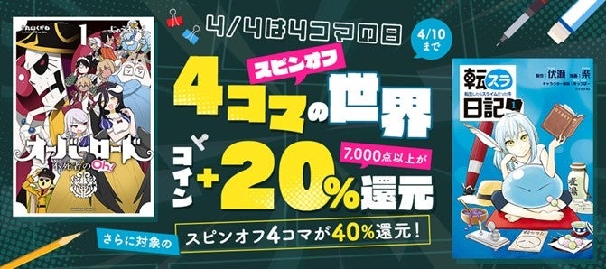 今年は知る人ぞ知るマニアックな世界、スピンオフ4コマを特集します。【異世界系】【マンガ原作系】【ライトノベル原作系】【アニメ・ゲーム原作系】いろいろなスピンオフ4コマ作品がコイン40%還元。また、その他の対象4コマ作品7,000点以上が、期間中はコイン20%還元。ぜひこのお得な機会に、多種多様な4コマ作品をお楽しみください。