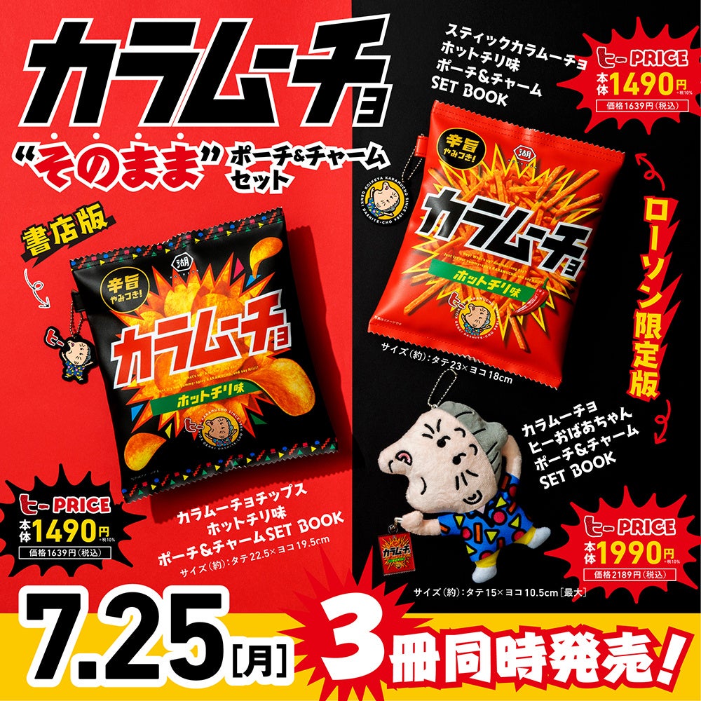 『スティックカラムーチョ ホットチリ味 ポーチ&チャーム SET BOOK』 価格:1,639円(税込)『カラムーチョ ヒーおばあちゃん ポーチ&チャーム SET BOOK』 価格:2,189円(税込)