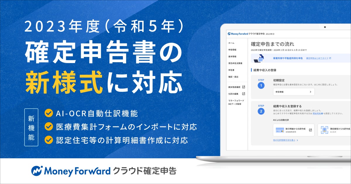 株式会社マネーフォワードは、『マネーフォワード クラウド確定申告』において、2023年度(令和5年分)確定申告書様式の出力に対応しました。