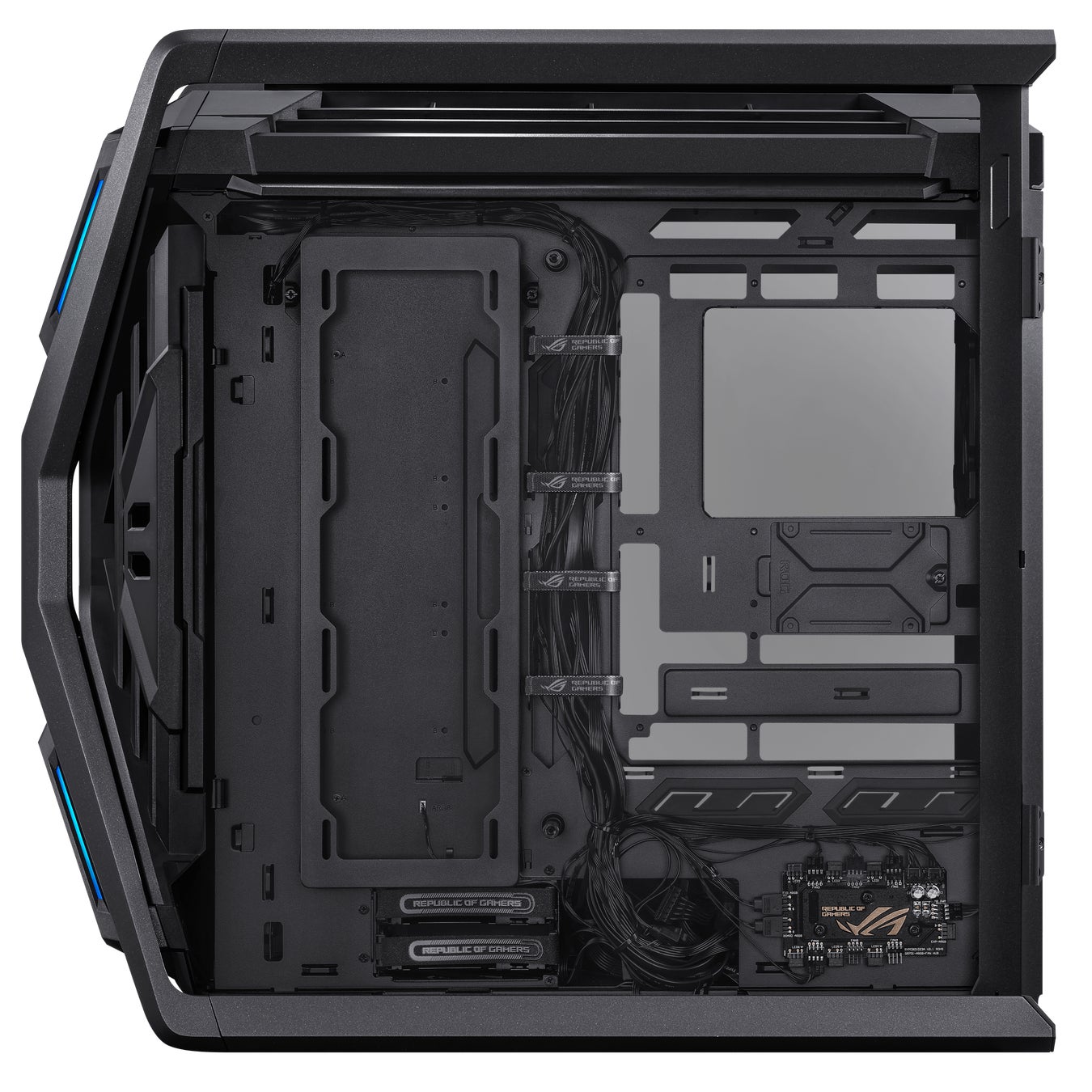 ROG Hyperion GR701 BTF Editionは、BTFマザーボードのコネクタに簡単にアクセスできるマザーボードトレイにケーブル・コネクタホールを備えています。