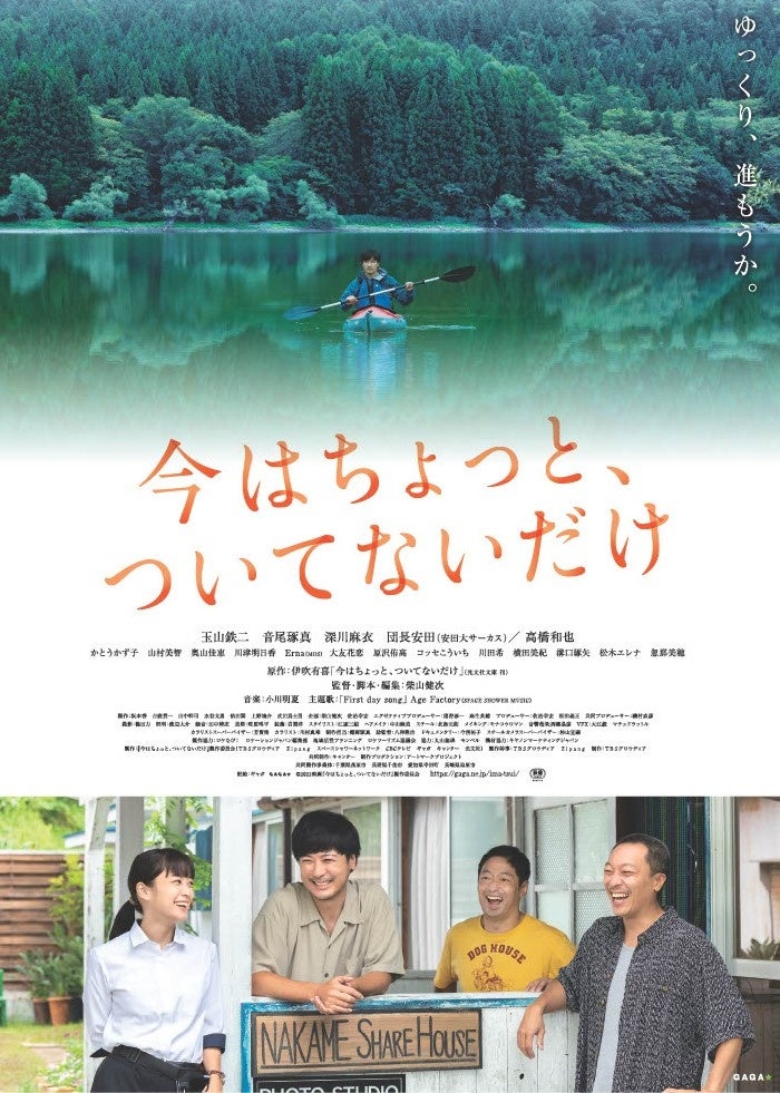 主人公・立花浩樹を演じる玉山鉄二が、長野県飯山市北竜湖で、美しい緑の木々をバックにカヌーを操るシーン、そして、千葉県茂原市に本作のため準備されたシェアハウスの前で、仲間達である音尾琢真、深川麻衣、団長安田と4人の笑顔が印象的なシーンを組み合わせた、色鮮やかなビジュアルが完成しました。