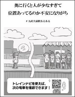 (3)実施内容 九州産業大学の学生等の利用が多い九産大前駅で、学生の共感を呼ぶ「あるあるネ