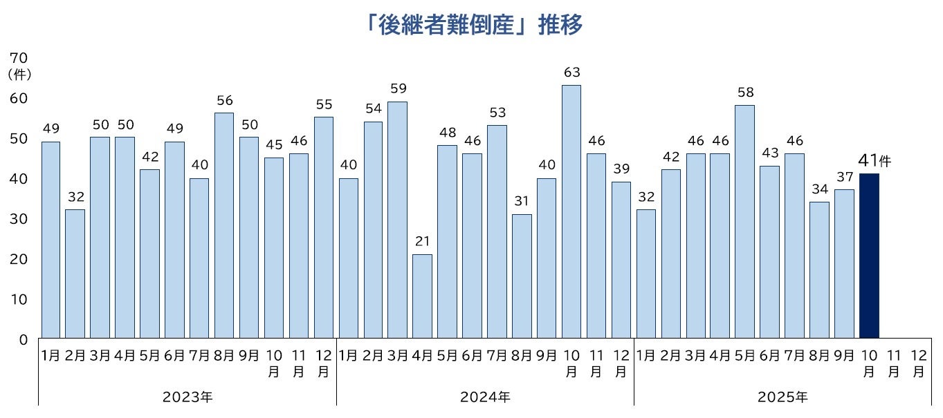 ■「後継者難倒産」は41件判明し、2025年1-10月の累計は425件となった