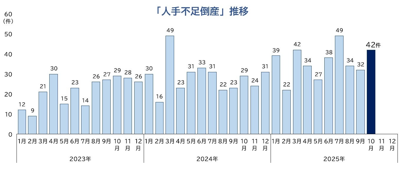 ■「人手不足倒産」は42件判明し、通年で過去最多を更新した