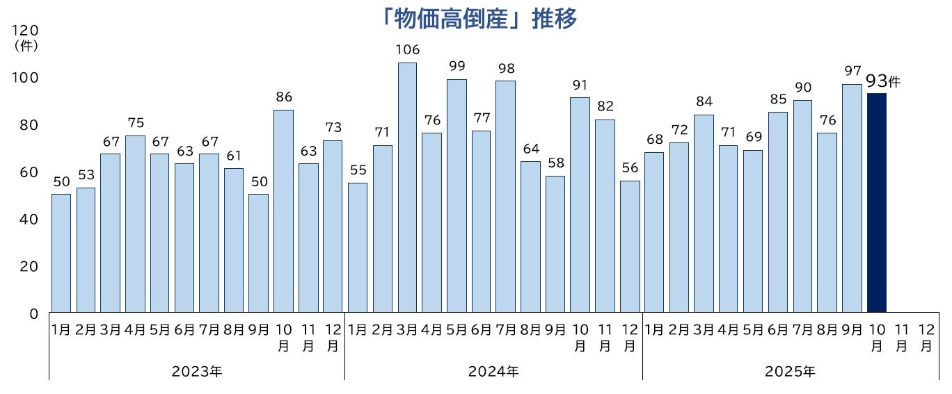 ■「物価高倒産」は93件判明し、2025年1-10月の累計は805件となった
