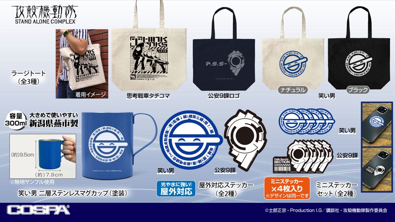 『攻殻機動隊 STAND ALONE COMPLEX』“笑い男”になれるパーカー、素子やタチコマのデザインアパレル&グッズなど多数登場!【株式会社コスパ】