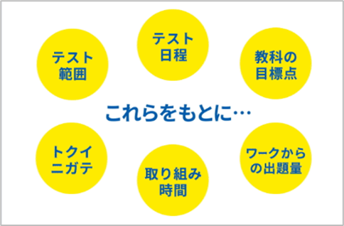 「進研ゼミ中学講座」は、一人ひとりのテスト日程や目標、取り組み時間に合わせて、専用の学習プランを自動で生成。「上手な勉強の仕方がわからない」と感じるお子さまでも迷うことなく学習に取り組める講座設計。自分のペースで学びながらも、1回1回のテストの本番で確実に結果を出し、志望校合格につなげられる教材にこだわり続けています。