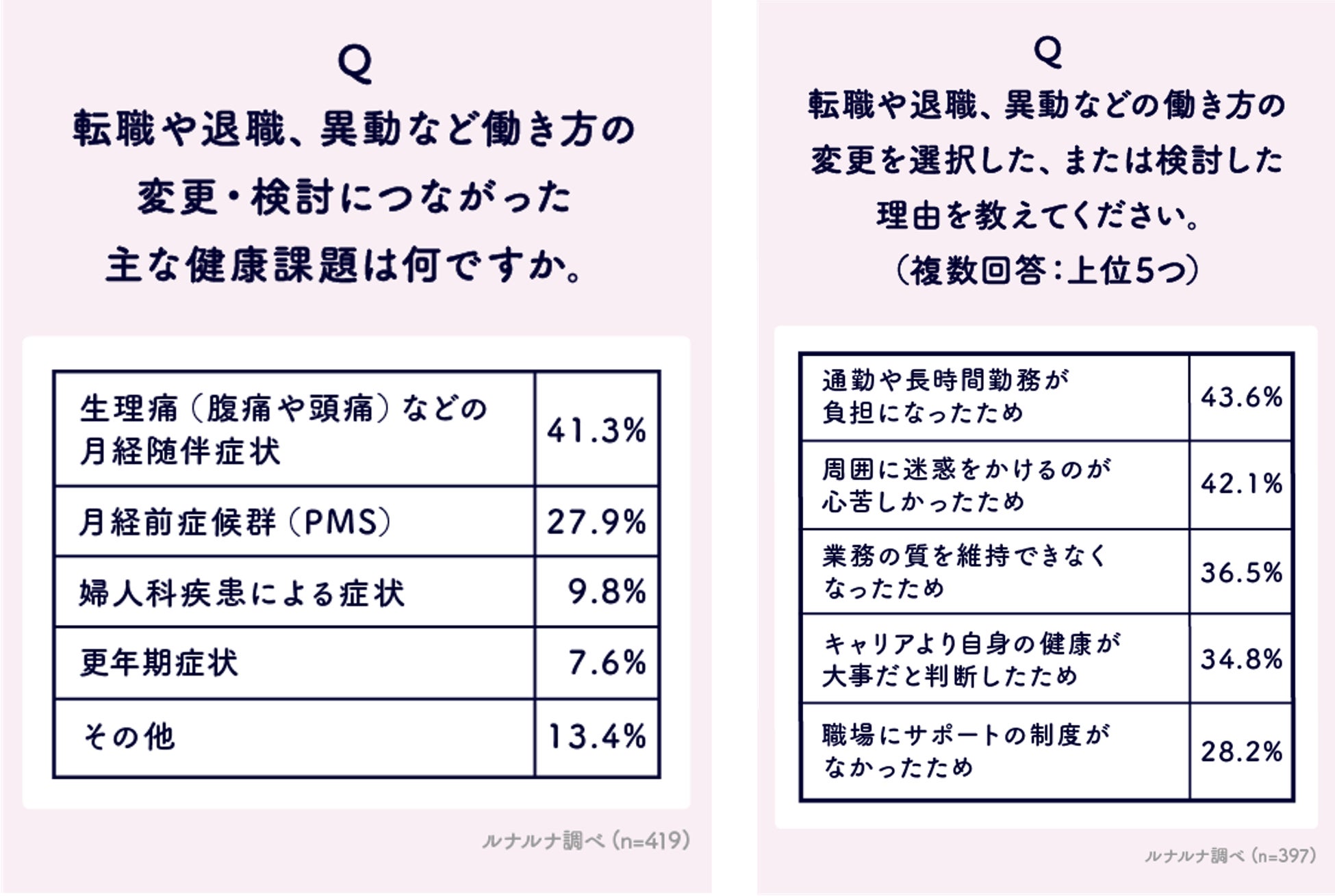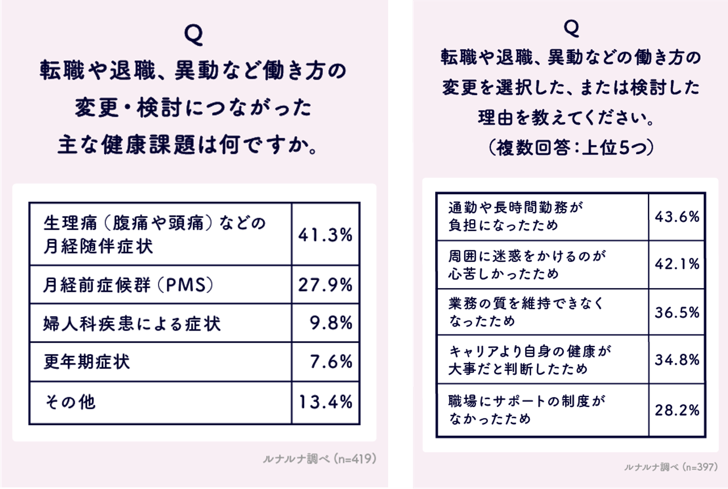 今回の調査を通して、多くの女性にとって、健康課題が働き方に影響していることが改めてわかりました。生理痛やPMS、更年期症状によって転職や退職、異動など働き方の変更を決断した人は少数派ではありましたが、妊娠・出産をきっかけに働き方を変えることを考えた女性は約7割いるという結果は、これから就職や結婚、出産などのライフステージを迎える人にもぜひ知っておいて欲しいと思います。