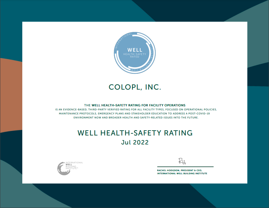 「WELL Health-Safety Rating」は、米国の国際WELLビルディング協会(以下「IWBI」)が運営しており、新型コロナウイルスの流行を機に策定された評価制度です。従業員および来訪者の健康と安全に配慮した施設であることを第三者機関が5つの観点から(清掃消毒手順、緊急時対応、健康サービス、空気・水質管理等)審査、国内では64件(※1)の企業が取得しており、公表されているプロジェクトの中では(※2)コロプラがエンターテインメント企業初の取得となります。