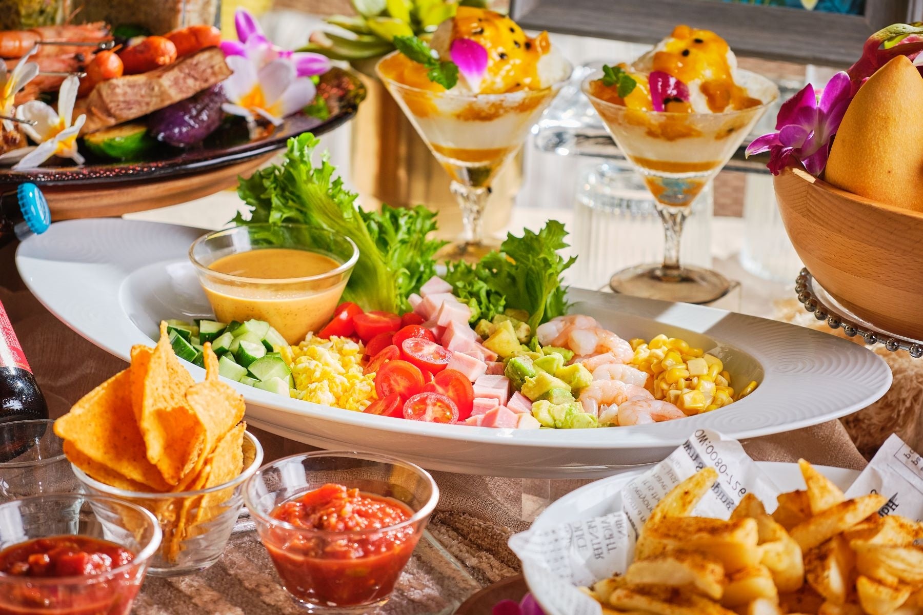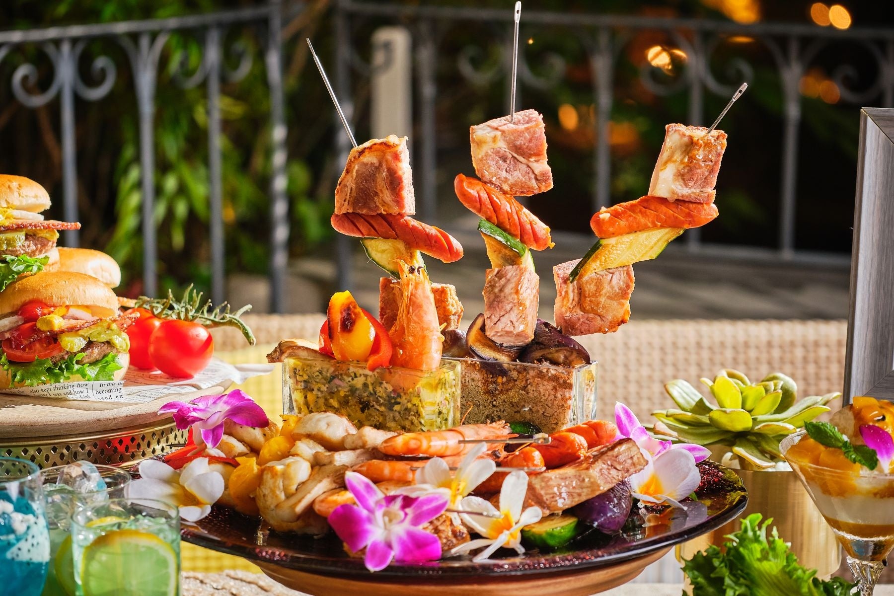 メインプレートは、ジューシーな味わいとハーブの香りが魅力のミートと、海のごちそうを贅沢な一串にしたシーフードの食べ応えのある2つのBBQブロシェットを提供します。