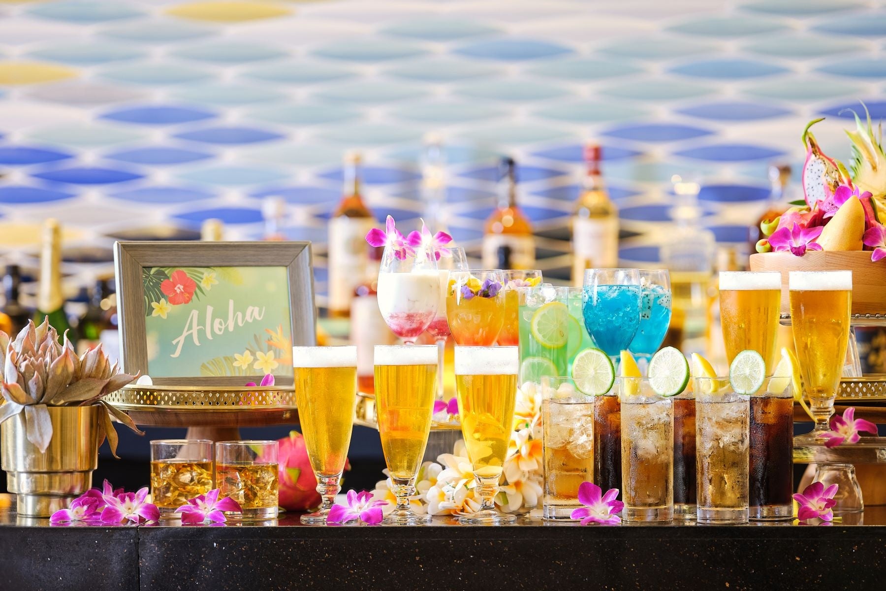 お飲み物は、ノンアルコールのハワイアンカクテルも豊富にご用意をしておりますので、アルコールの苦手な方や、お子様連れのファミリーでもお楽しみいただけます。