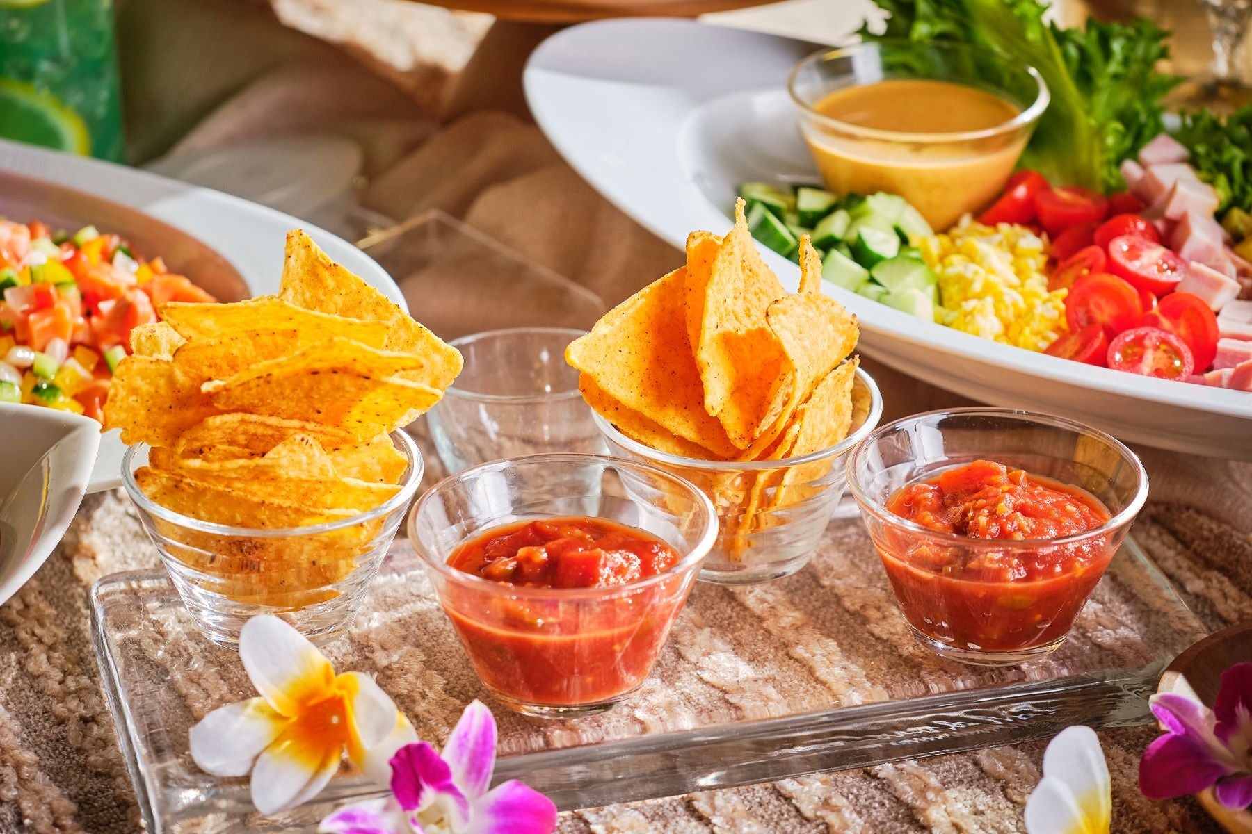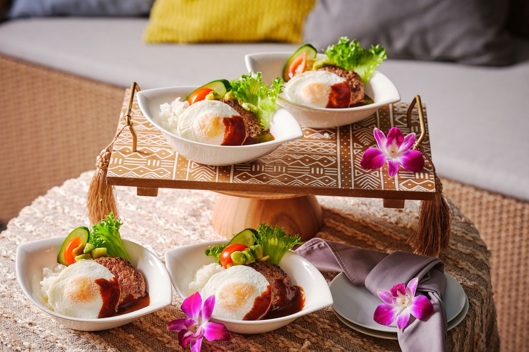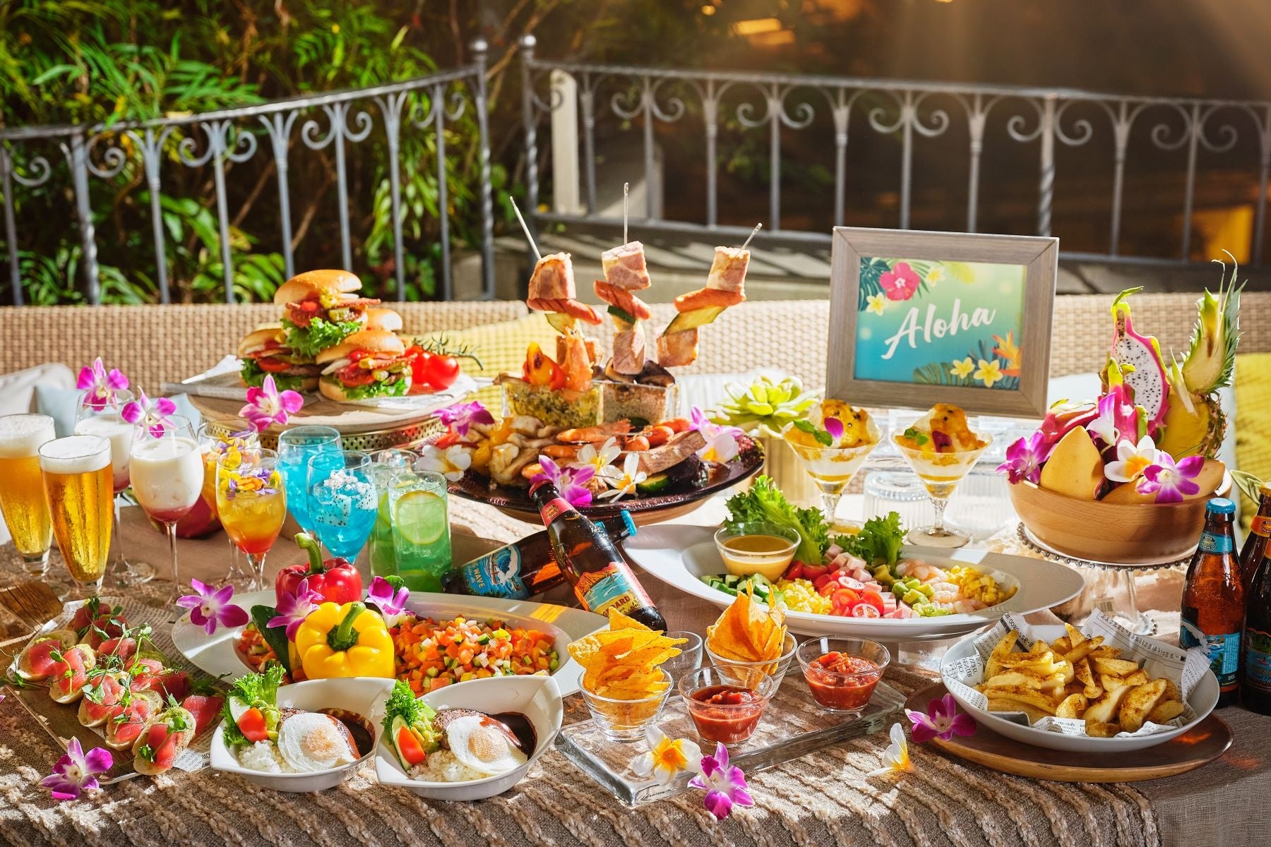 さらに、オプションにてご提供する、ハワイのローカルフードとして知られているロコモコ、ボリューム満点のハンバーガー、カリっと香ばしいフライドポテトを共に召し上がっていただくことで、お腹も心も満たされる至福のひとときを堪能できます。