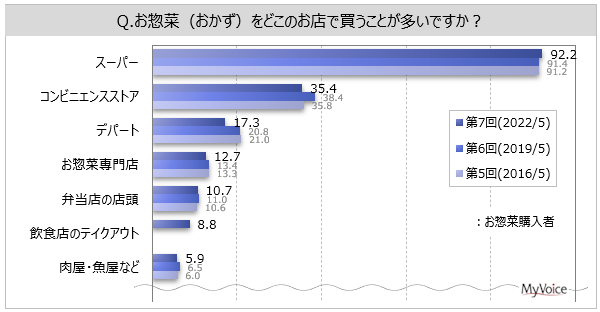 マイボイスコム株式会社(東京都千代田区、代表取締役社長:高井和久)は、7回目となる『お惣菜』に関するインターネット調査を2022年5月1日~5日に実施し、10,066件の回答を集めました。調査結果をお知らせします。