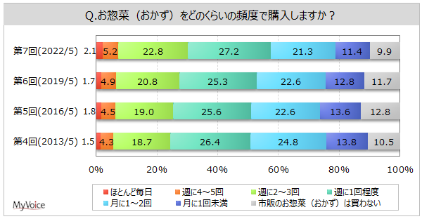 【調査結果詳細】 https://myel.myvoice.jp/products/detail.php?product_id=28601- お惣菜の購入頻度