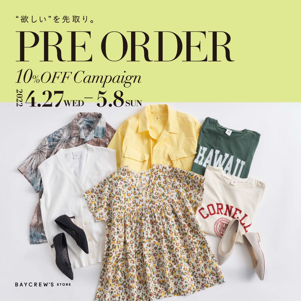 株式会社ベイクルーズ(東京都渋谷区、代表:杉村茂)が運営するファッション通販サイト「BAYCREW'S STORE|ベイクルーズストア(https://baycrews.jp/)」では、2022年初夏〜夏の最新アイテムをオンラインでいち早く閲覧できる先行予約会ページをリリースいたしました。