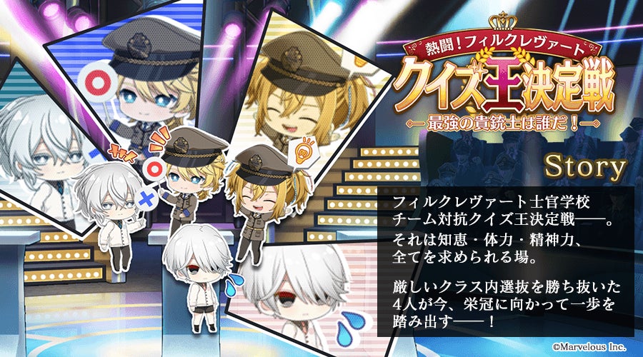 - ストーリーイベント「熱闘!フィルクレヴァートクイズ王決定戦~最強の貴銃士は俺だ!~」で期間限定ストーリーをチェック!