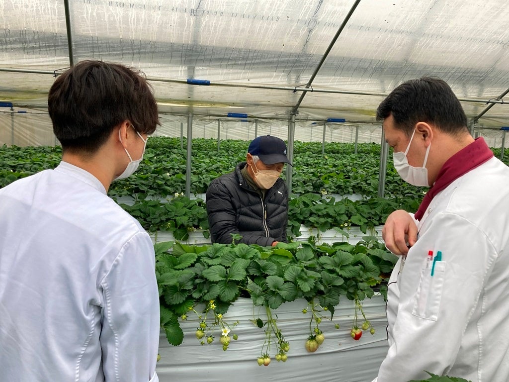 松原実農園は、明日香の里山にあり、農園主の松原実さんは明日香村で農業一筋50年のベテランです。「いろんな人が訪れ、自然とのふれあいと家族の憩いの場所となれば」と思い、今までのように京阪神などに出荷する果物の栽培のみでなく、新たに「いちご狩り」や「みかん狩り」の観光農園を始められました。また、太古からの歴史あふれる明日香村で「周辺の自然はもちろん多くの古墳群や寺社がなど見どころ満載です。是非とれたての果物の味とともに、自然と歴史に触れてください」とお話くださいました。
