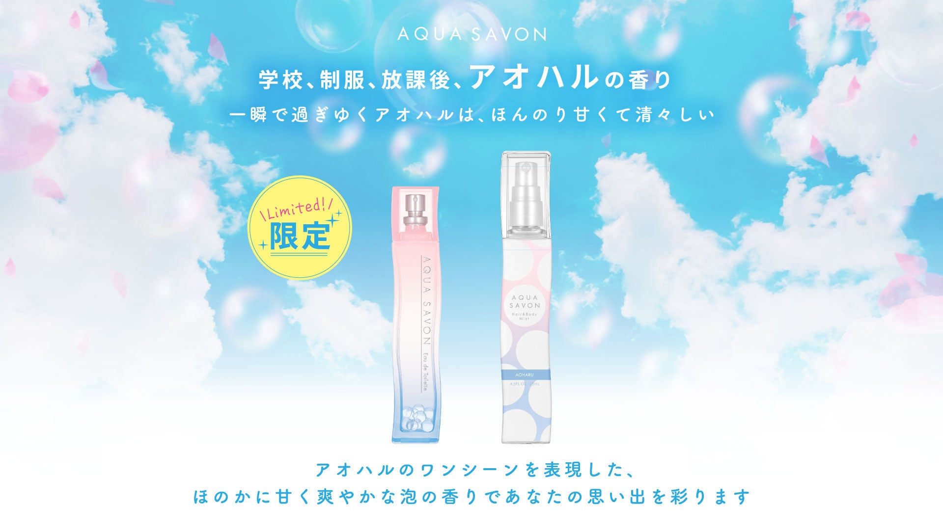 『「アクア シャボン」の甘く爽やかな香りがアオハルの楽しい記憶につながる』をコンセプトに、基幹商品「オードトワレ」と若年ユーザーの多い「ヘアー&ボディミスト」からアオハルを想起させる限定の香り「学校、制服、放課後、アオハルの香り」発売に併せて『アオハルシャボン』キャンペーンを開催。アオハルの楽しい思い出と「アクア シャボン」の香りの記憶が結びつくことで、10代のアオハルを盛り上げながら、20代以上にはアオハル時代を懐かしく感じていただける企画です。