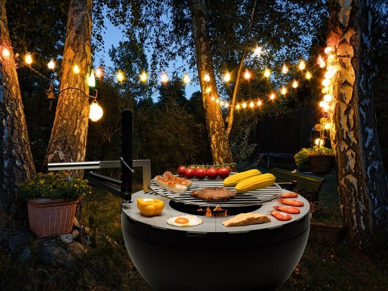 50年以上の歴史を持つスイスのファミリー企業が出展。グランピング、コテージ、キャンプ場、別荘、BBQ場等に常設で友人、家族と高級BBQを楽しめる。薪を燃やして、火が落ち着いてきたらトッププレートでグリル。網や鍋もセットできる。