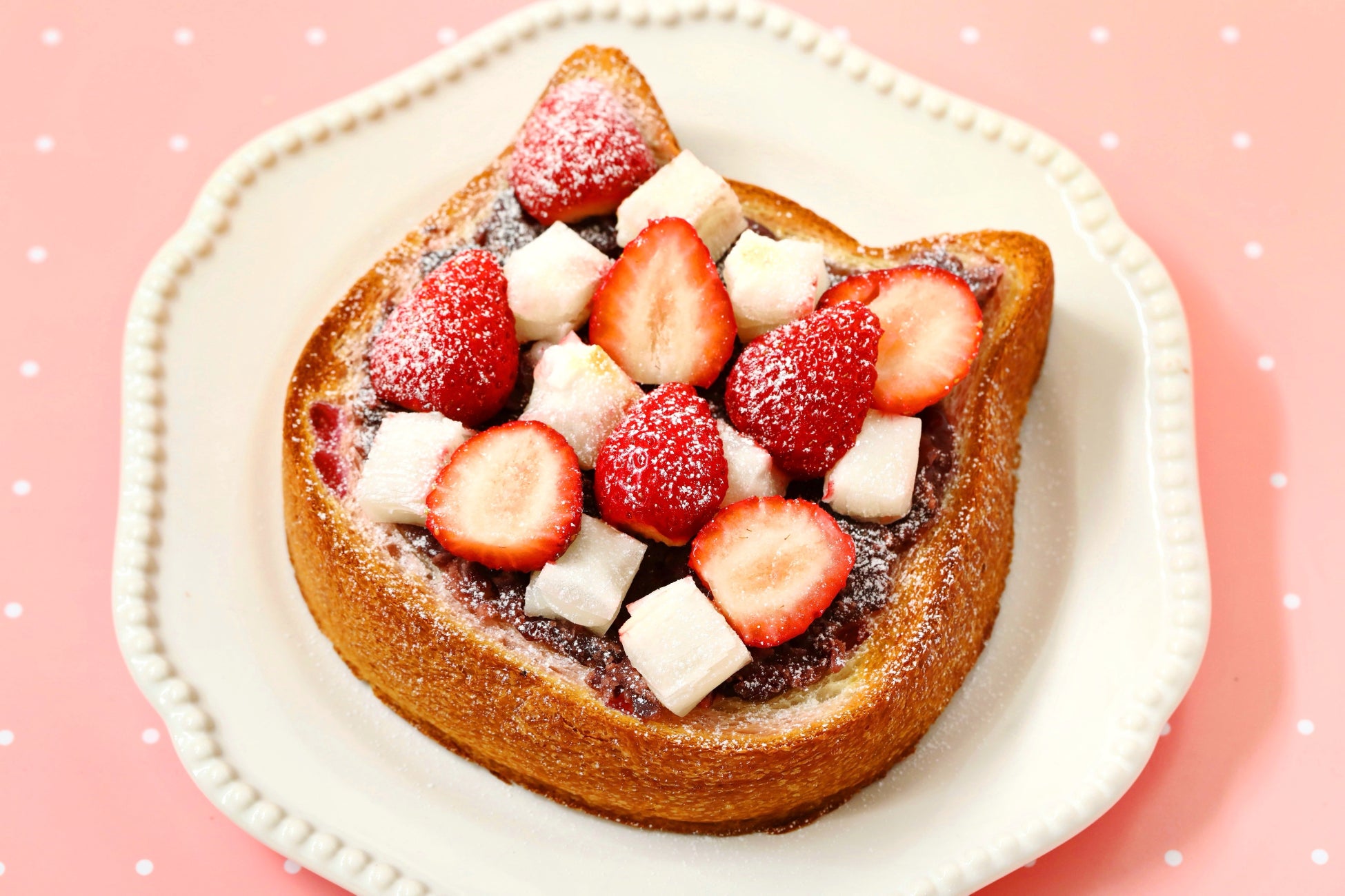 *「ねこねこ食パン 練乳いちご」のアレンジ写真でトッピングしている食材は付属しておりません。